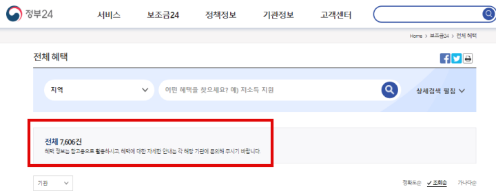 1. 숨은 정부 지원금 찾기- 정부24 사이트