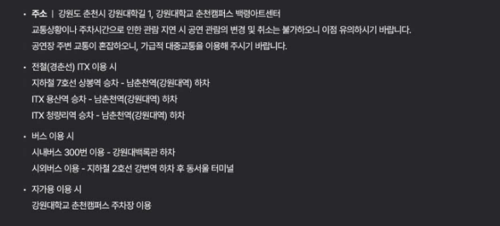이찬원 춘천 콘서트는 강원대학교 백령아트센터에서 진행되며 대중교통 이용방법 및 주차는 아래 사진을 참조해 주세요.